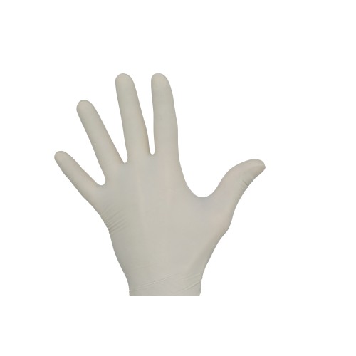 Gumikesztyű enyhén púderes kivitel fehér színben elhunyt kezeléshez.