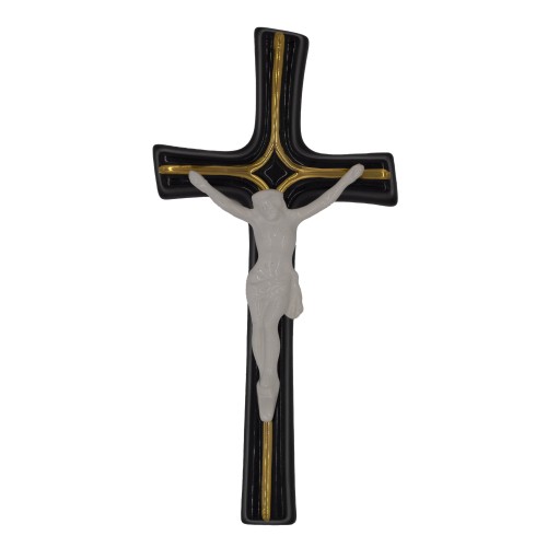 Koporsóra való feszület porcelán 20cm-es méretben fekete színű.