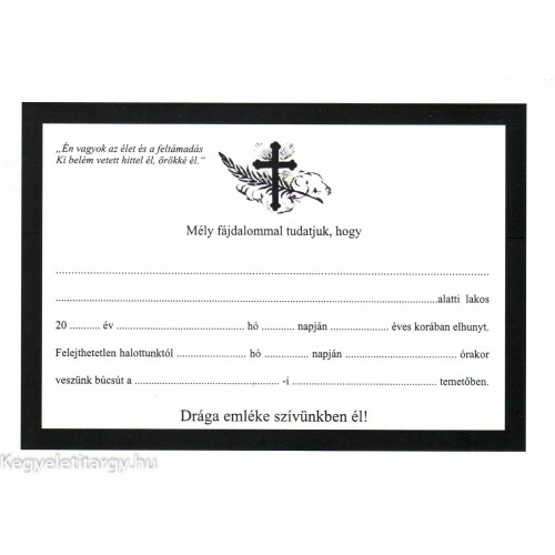 • Gyászjelentés a/5 katolikus kereszt pálmalevél mintával ofszet papírból