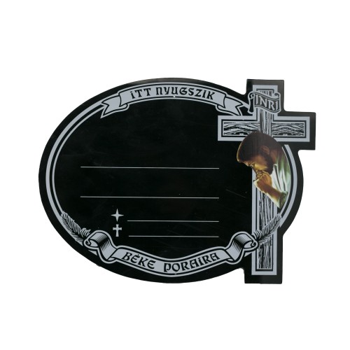 Fejfatábla sírjelzőre műanyagból katolikus, Jézus mintával ovális kivitelben.