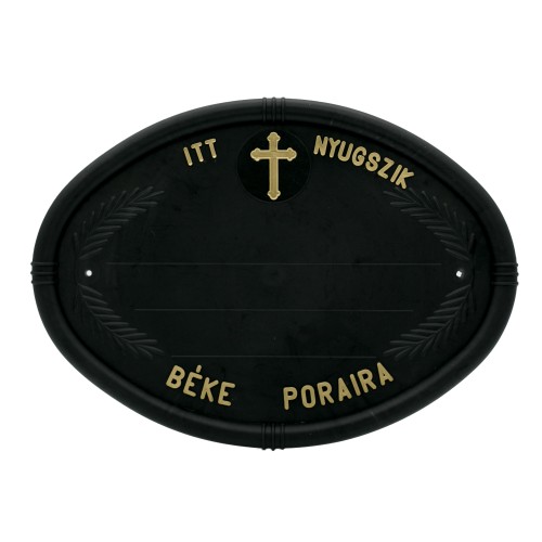 Fejfatábla sírjelzőre műanyagból katolikus, keresztes ovális kivitelben.