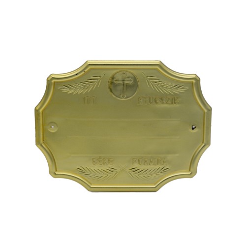 Fejfatábla műanyag fémgőzölt szögletes katolikus arany színben