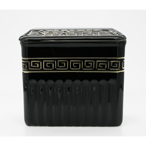 Aranyozott kerámia urna görög fekete színben szögletes, iker kivitelben.