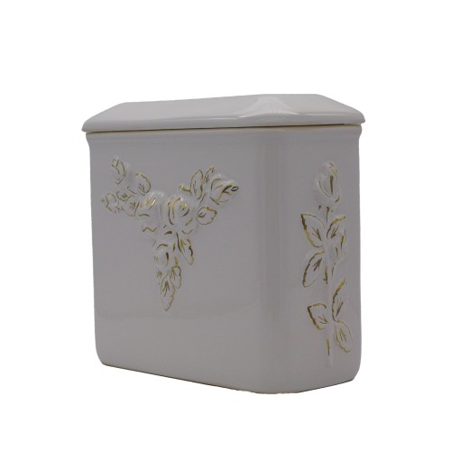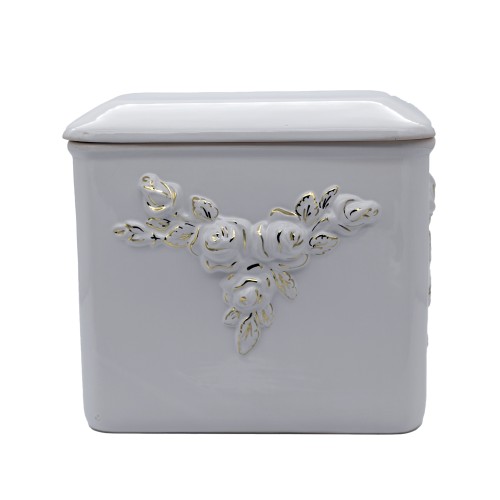 Urna kerámia aranyozott szögletes fehér rózsa mintával