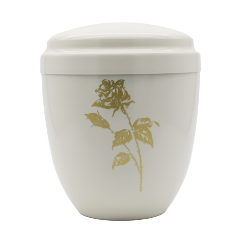 Fém urna fehér színben rózsa mintával.
