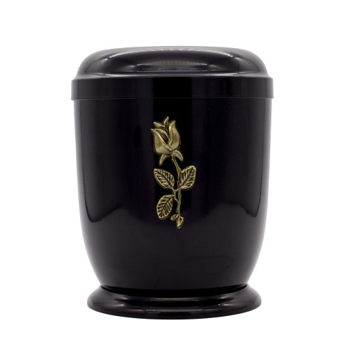 Fém urna talpas kivitelben fekete színben rózsa fémrátéttel.