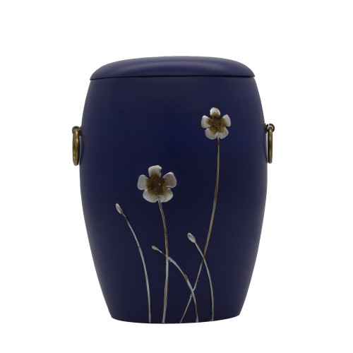 Urna kompozit anyagból, kék színben százszorszép mintával.