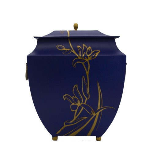 Urna kompozit anyagból, kék színben orchidea mintával.