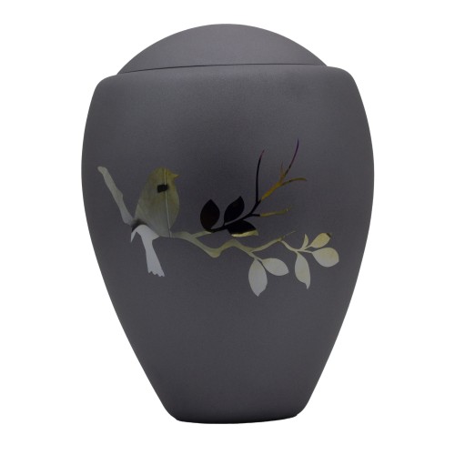 Exkluzív üvegopál urna kobaltkék énekesmadár mintával.