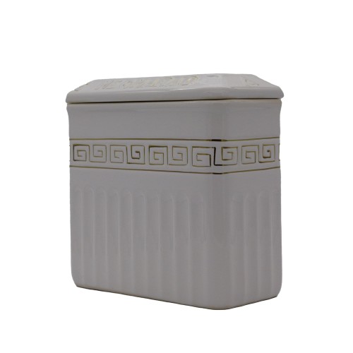 Aranyozott kerámia urna görög fehér színben szögletes, iker kivitelben.