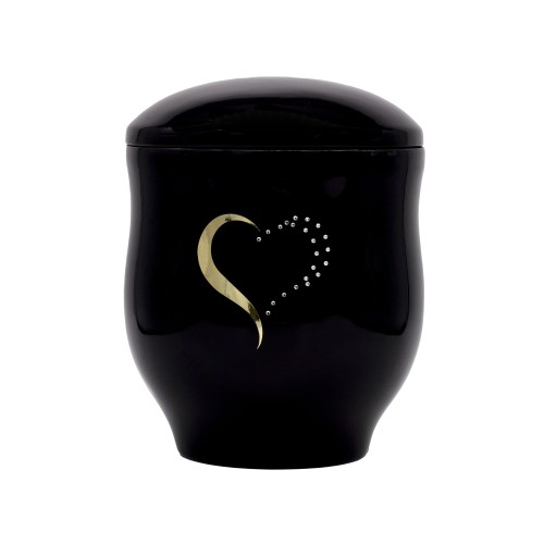 Kerámia urna szív mintával strasszkövekkek fekete színűre mázazva.