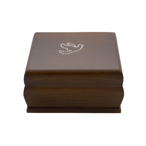 Budapest fa urna galamb strassz díszítéssel barna színben. Szögletes kivitelben, ikresíthető.
