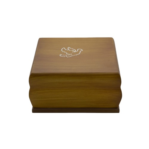 Budapest fa urna galamb strassz díszítéssel natúr színben. Szögletes kivitelben, ikresíthető.