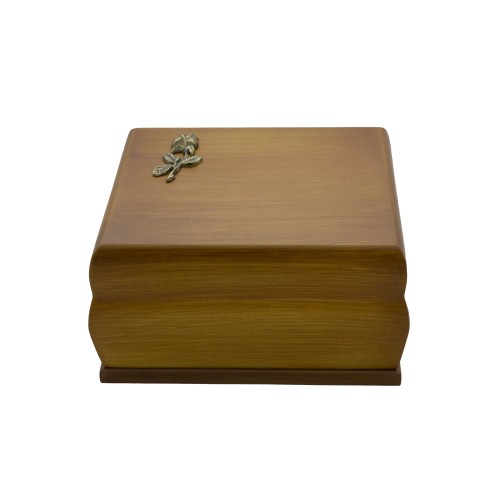Budapest fa urna rózsa fémrátéttel natúr színben. Szögletes kivitelben, ikresíthető.