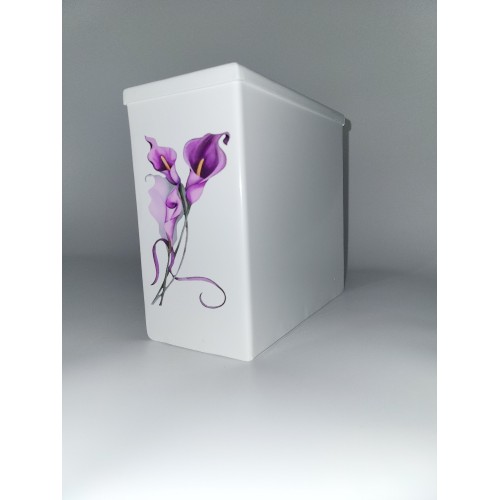 Fém urna egyedi matricával díszítve hegeres vagy szögletes kivitelben. Egyedi az elhunytra jellemző képpel díszített urnát a hozzátartozó által kiválasztott fotóval díszítjük.