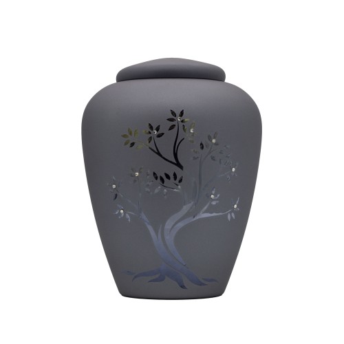 Exkluzív matt kobaltkék üvegopál urna életfa mintával.