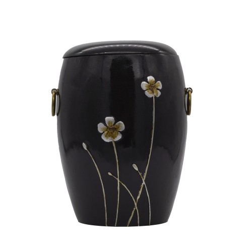 Urna kompozit anyagból, fekete gránitőrleménnyel dúsítva százszorszép mintával.