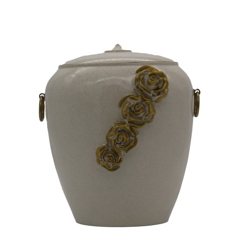 Urna kompozit anyagból, fehér márvány őrleménnyel dúsítva rózsa mintával.