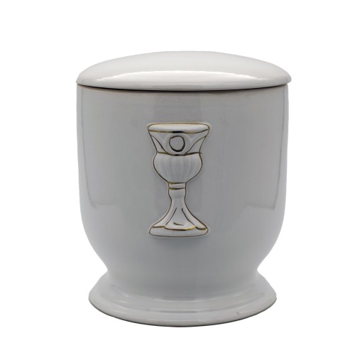 Aranyozott kerámia urna kehely mintával fehér színben.