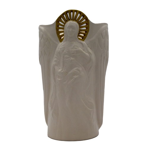 Kézzel készített amfora alakú angyalos urna Kákonyi Júlia keramikus művész műhelyéből.