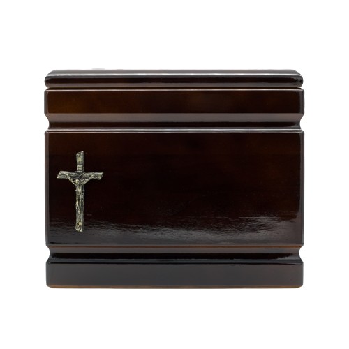 Iker fa urna barna színben kereszt fémrátéttel.