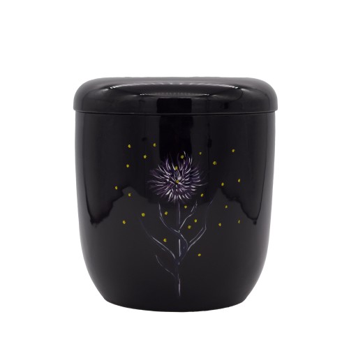 Kerámia urna matt felülettel kézzel festett imola mintával fekete színben.