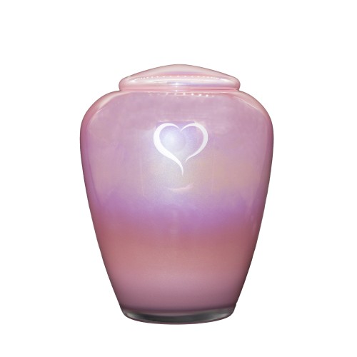 Exkluzív rózsaszín üvegopál urna szív mintával.