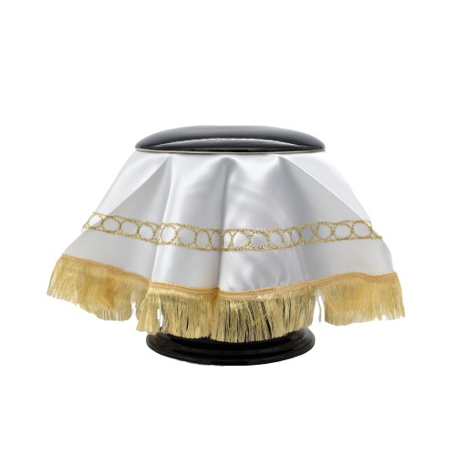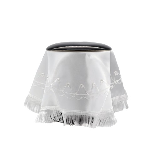 Urnaterítő selyem fehér színben, fehér vagy arany hímzéssel.
